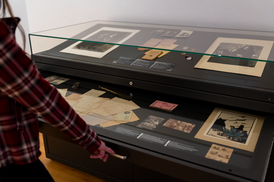 Un parcours bouleversant complété par l’installation de nouveaux mobiliers entièrement dédiés à la présentation de ces précieuses créations, témoignages terribles de l’expérience des combats illustrant le vécu des soldats et le ressenti à « l’arrière ». Dans un foisonnement de créativité, les thèmes et les styles se croisent : entre les gravures d’Otto Dix et d’André Devambez, entre les esquisses de Fernand Léger et celles de Charles Dufresne, se dévoile cette estampe poignante de Félix Vallotton montrant la dure réalité du front avec ces corps allongés sous les barbelés.