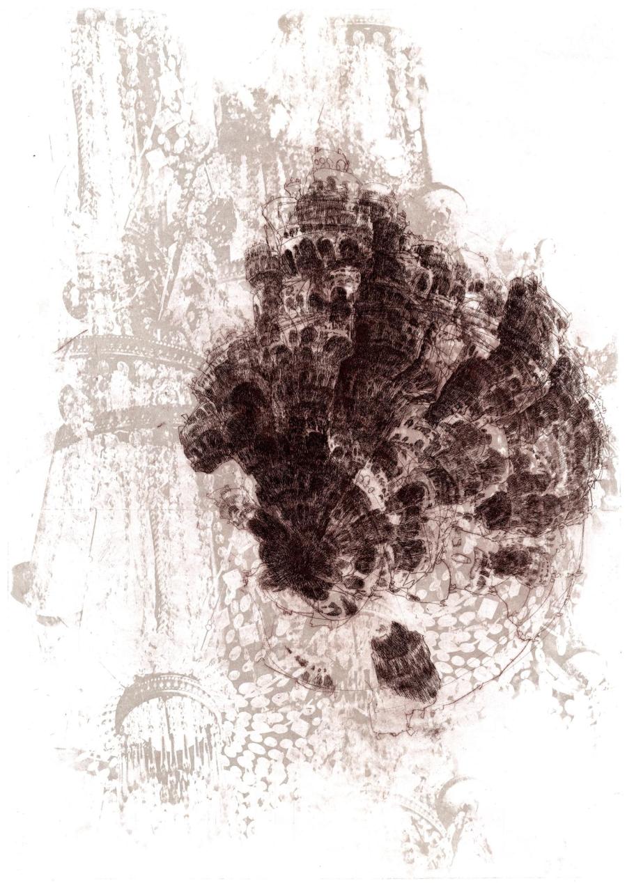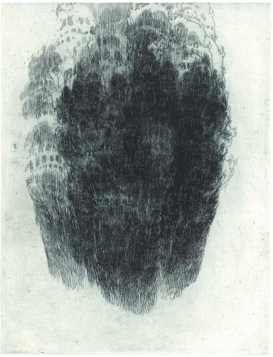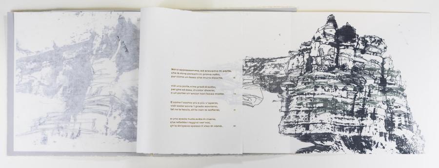 Dans la recherche de l'artiste, l'amour du signe graphique trouve son application et sa forme dans le dessin pur et la gravure chalcographique. L'artiste est attirée par la représentation des surfaces et leur capacité à raconter le passage du temps et de l'humanité à travers la superposition des ères géologiques. Dans ses œuvres, les lieux sont le résultat d'un syncrétisme entre la nature, le sacré, le profane et les pratiques dévotionnelles. Dans son travail de gravure, sa connaissance approfondie de la tradition chalcographique s'allie à une volonté d'expérimentation qui s'exprime également à travers l'utilisation du photopolymère. Sa maîtrise profonde des techniques et de la matière se traduit par une authenticité expressive, attentive aux équilibres subtils entre le plein et le vide, la lumière et l'obscurité, comme l'évoque également le titre de l'exposition, Illune (« sans lune »), inspiré du poème « Nightpiece» de James Joyce.