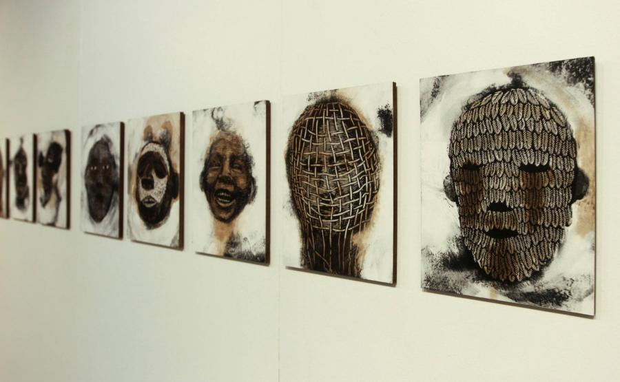 Puis le corps entre en scène. Non pas comme figure classique, mais comme territoire. Humus, membrane, surface poreuse. Les silhouettes se dissolvent dans des réseaux végétaux. Intérieur et extérieur se confondent. Le charnel rejoint le métaphysique. La gravure devient un acte de friction : creuser, entailler, faire surgir. Ici, l’artiste radicalise le geste. Des visages gravés dans le bois, frontaux, sans échappatoire. Des masques qui regardent autant qu’ils sont regardés.