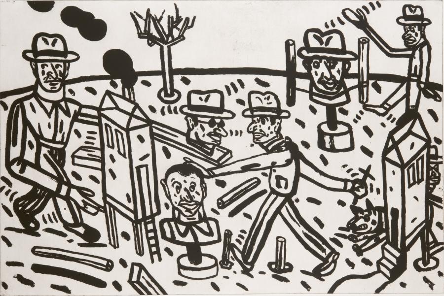 - L’exposition présente les œuvres de Pierre Alechinsky, Nathalie Amand, Eduardo Arroyo, Glen Baxter, Pierre Bettencourt, Jacques Charlier, Roman Cieslewicz, Roby Comblain, Paul Cox, Kikie Crêvecœur, Stefan de Jaeger, Camille De Taeye, Jo Delahaut, Anne Des