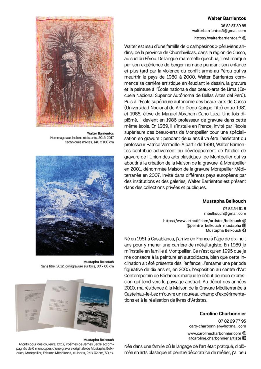 Walter Barrientos, Mustapha Belkouch, Caroline Charbonnier, Marie‑Noël David, Jean‑Jacques Débonnaire, Loïse Doyen, Aline Filipp, Jean‑François Gallas, Marc Granier, Norma Hecker, Marc Itier, L.L.M., Luis70, Pasa, Pascal Mahaud, Seb.M, Philippe Minard, Dominique Nespoulous, Marguerite Olink, David Ozanne, Chloé Persillet, Virginie Pey, Annie Pous, Isabelle Ranc, Caroline Rochette