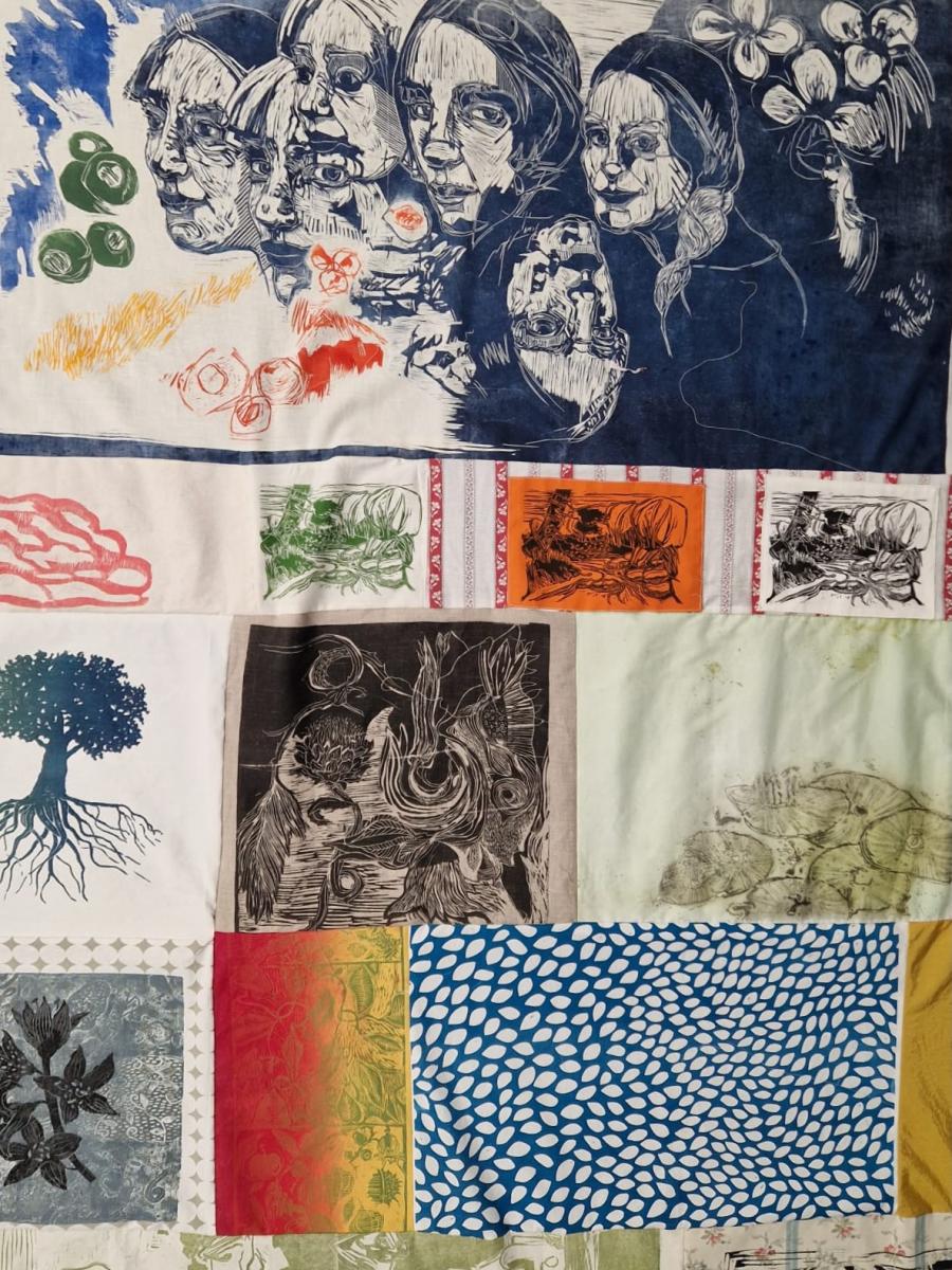 21 graveurs présentent de nouvelles estampes personnelles, ainsi que 4 grandes oeuvres collectives composées d'estampes imprimées sur tissus,