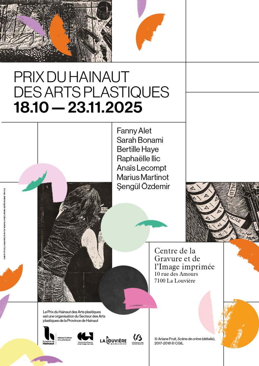 Cette année l’exposition des artistes candidat.es au Prix du Hainaut des Arts plastiques s’installe aux cimaises du Centre de la Gravure et de l’Image imprimée à La Louvière. Les espaces d’expositions seront partagés avec les candidat.es au Prix de la Gravure et de l’Image imprimée de la Fédération Wallonie-Bruxelles afin de proposer deux expositions qui mettent en évidence les pratiques émergentes. Cette année, parmi les dossiers reçus, le jury a sélectionné 7 artistes pour l’exposition. Cette sélection aborde tous les domaines de l’expression artistique. Le.la lauréat.e 2025 sera, quant à lui.elle, proclamé.e le vendredi 17 octobre à 19h. Il.elle recevra une somme de 2500 euros qui l’aidera à développer sa pratique et bénéficiera d’un suivi particulier de la part de l’équipe du Secteur des Arts plastiques de la Province de Hainaut. Pour le Secteur des Arts plastiques organisateur, il ne s’agit pas seulement de la remise d’un prix. En effet, ce projet émane d’une volonté de faire découvrir des pratiques artistiques et de partager ces recherches autant avec un public de professionnels du monde de l’art qu’avec toutes personnes curieuses de culture. À la suite de chacun des projets, ce sont des collaborations qui naissent entre ces artistes et les institutions culturelles avec la possibilité, pour elleux, d’être accompagné.es, de créer de nouvelles œuvres et d’échanger. C’est la raison pour laquelle, il est important également de leur ouvrir les portes des institutions du territoire qui s’efforcent au quotidien de valoriser les arts plastiques. Le Centre de la Gravure et de l’Image imprimée fait partie de ces lieux incontournables qui ont à cœur de promouvoir la création