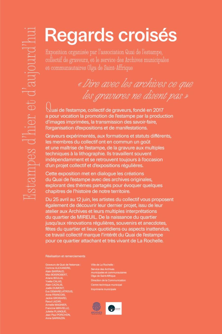 Exposition du Quai de l'Estampe aux Archives Municipales de La Rochelle