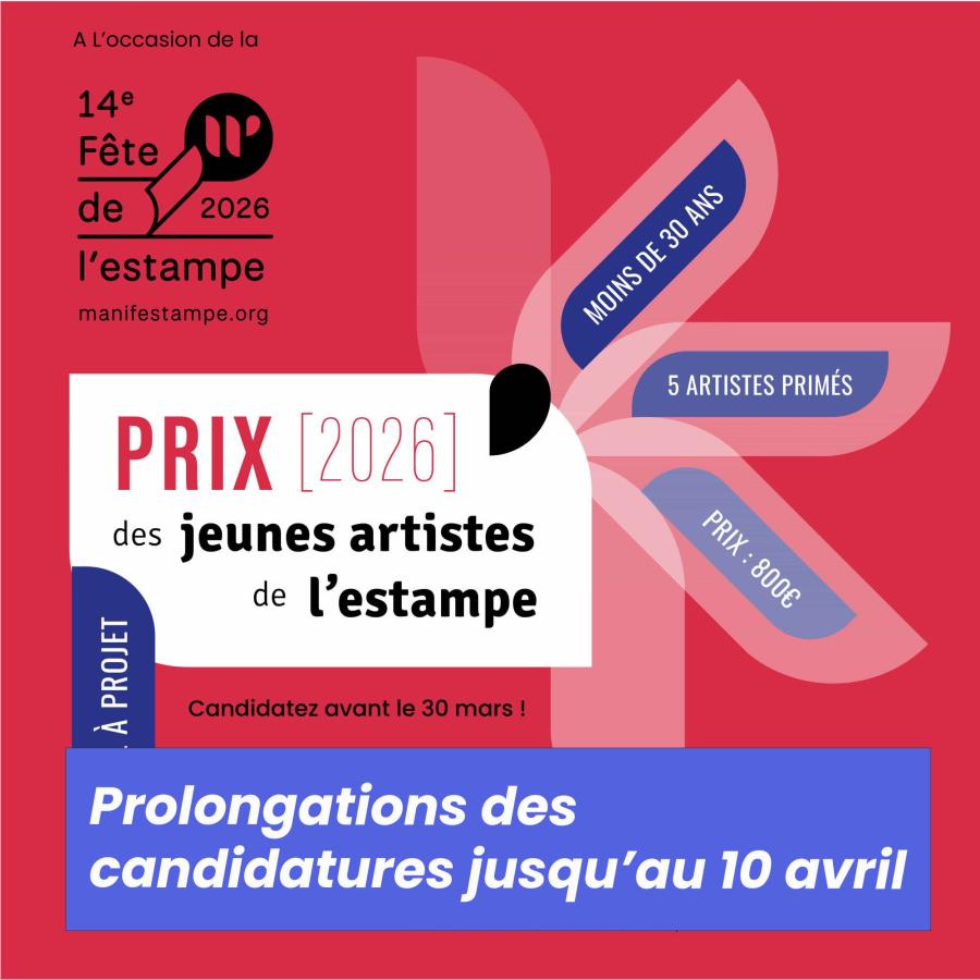 Dans le cadre de la Fête de l’estampe 2026 qui se déroulera autour du 26 mai 2026, Manifestampe lance la troisième édition de son prix qui s’adresse à des jeunes artistes de l’estampe, résidant en France.