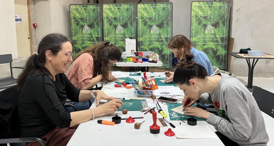 L'artiste-graveuse Maslau organise des ateliers d'initiation à la linogravure à Lyon.