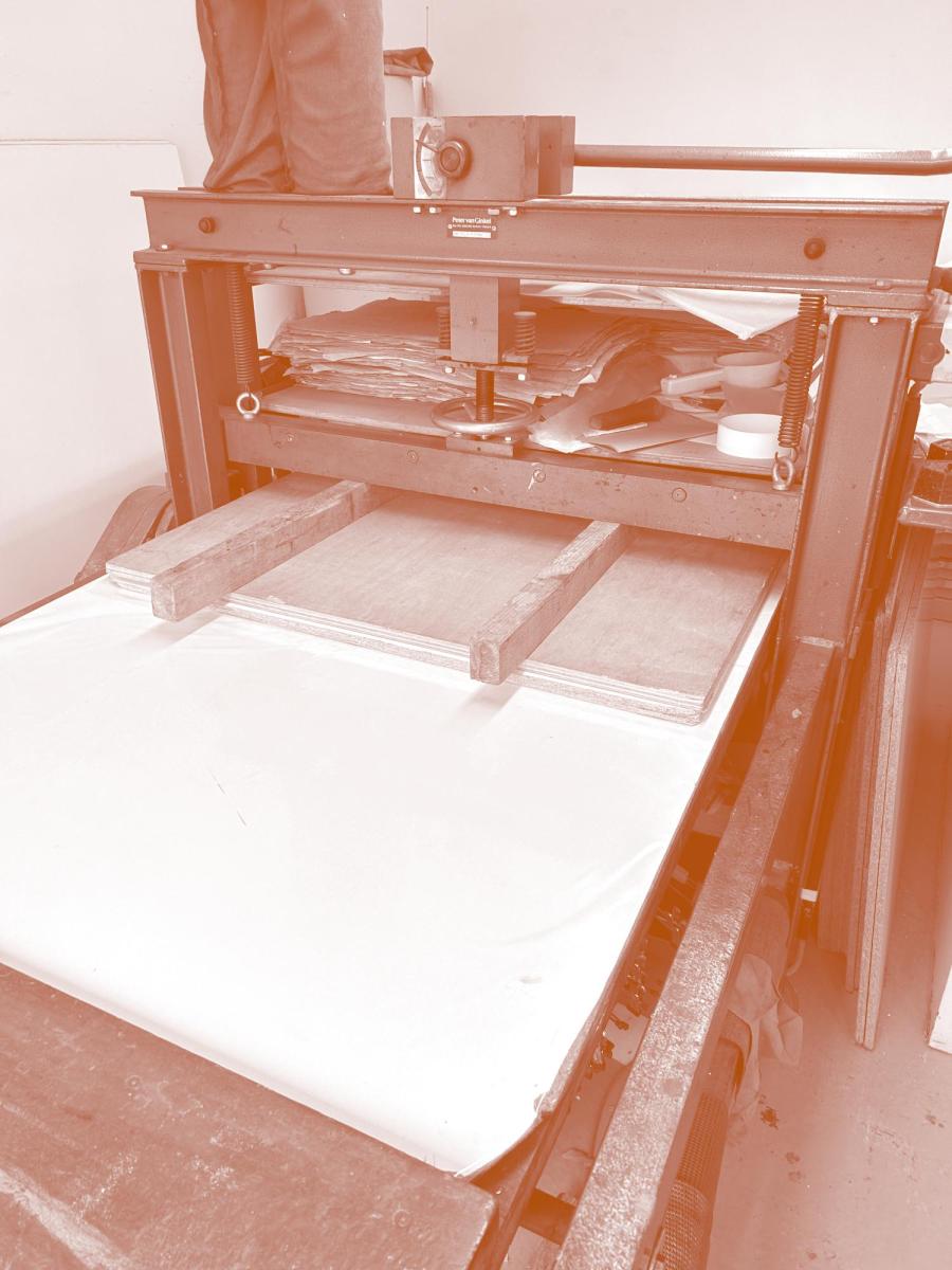 Elles mettent en valeur et protègent les travaux imprimés des stagiaires et nourrissent leurs recherches et leurs productions techniques, artistiques et plastiques. Chaque stagiaire éprouve les outils nécessaires à la réalisation de prototypes pour les deux principales formes de livres d’artistes : leporello, portfolio et leur boite de protection.