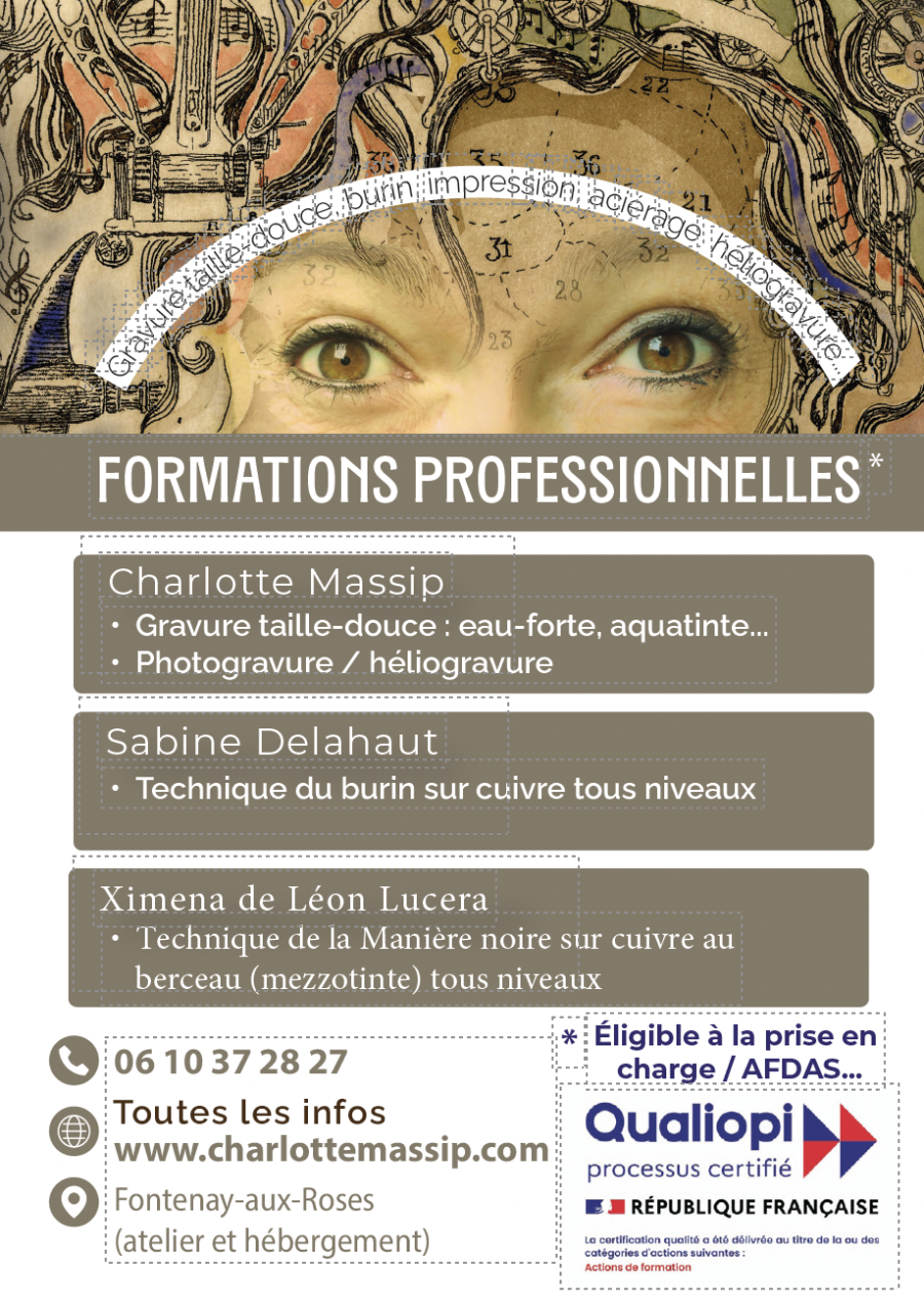 Formations professionnelles en BURIN SUR CUIVRE avec SABINE DELAHAUT- OF certifié Qualiopi- Atelier de Charlotte Massip- BURIN