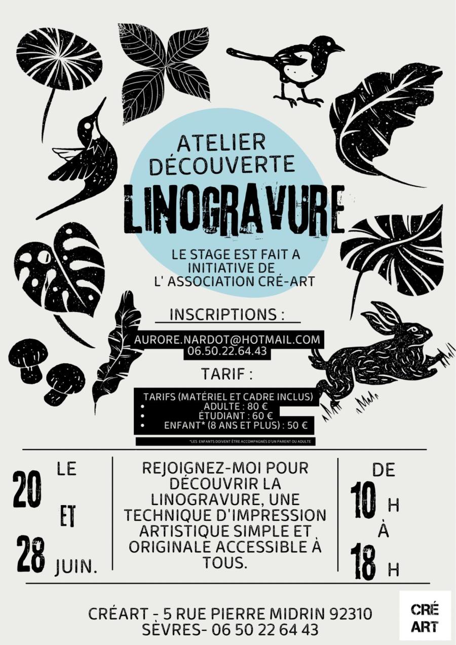 L’association Cré-Art vous invite à un atelier d’initiation à la linogravure, technique d’impression artistique ancestrale qui allie créativité, précision et savoir-faire traditionnel.