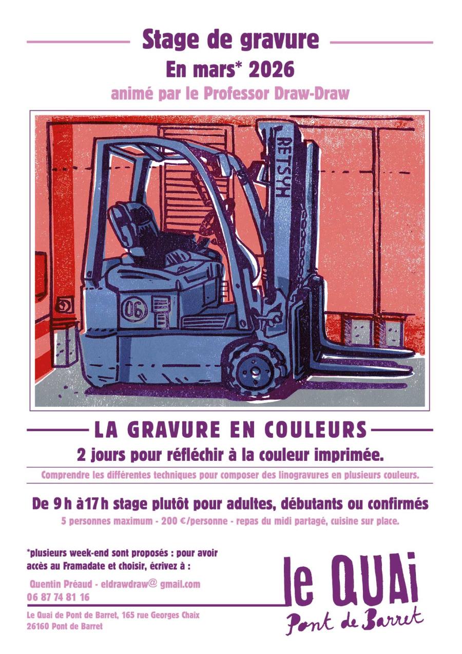 Stage de linogravure en couleurs dans la Drôme, dans l'atelier du Pr. Draw-Draw