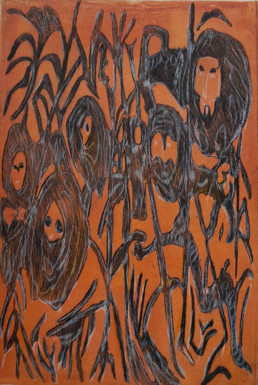 Mon travail dans la gravure est surtout orienté sur la linogravure, gravure sur bois, gravure sur plexiglass et rhénalon, gravure sur métal Zinc et Cuivre. En dehors des gouges pour la linogravure et xylogravure, j'utilise uniquement la pointe sèche pour les autres supports. Mon travail reste académique car je trouve les gravures du XVII au XIX siècles de toute beauté pour certaines et d'une complexité majeure. Je suis également impressionné par certaines estampes en particulier japonaises et je tente de réexpérimenter les méthodes employées, en particulier les multi teintes à l'aide d'autres matériaux que le bois. Je ne suis donc pas à proprement parler un créatif sauf dans le cadre de la linogravure et de certaines gravures sur plexiglass et dans ce domaine là je laisse retourner ma pensée dans les souvenirs de certains pays où j'ai séjourné, l'Afrique en particulier. Je réalise également mes impressions à l'aide d'une presse à rouleaux.