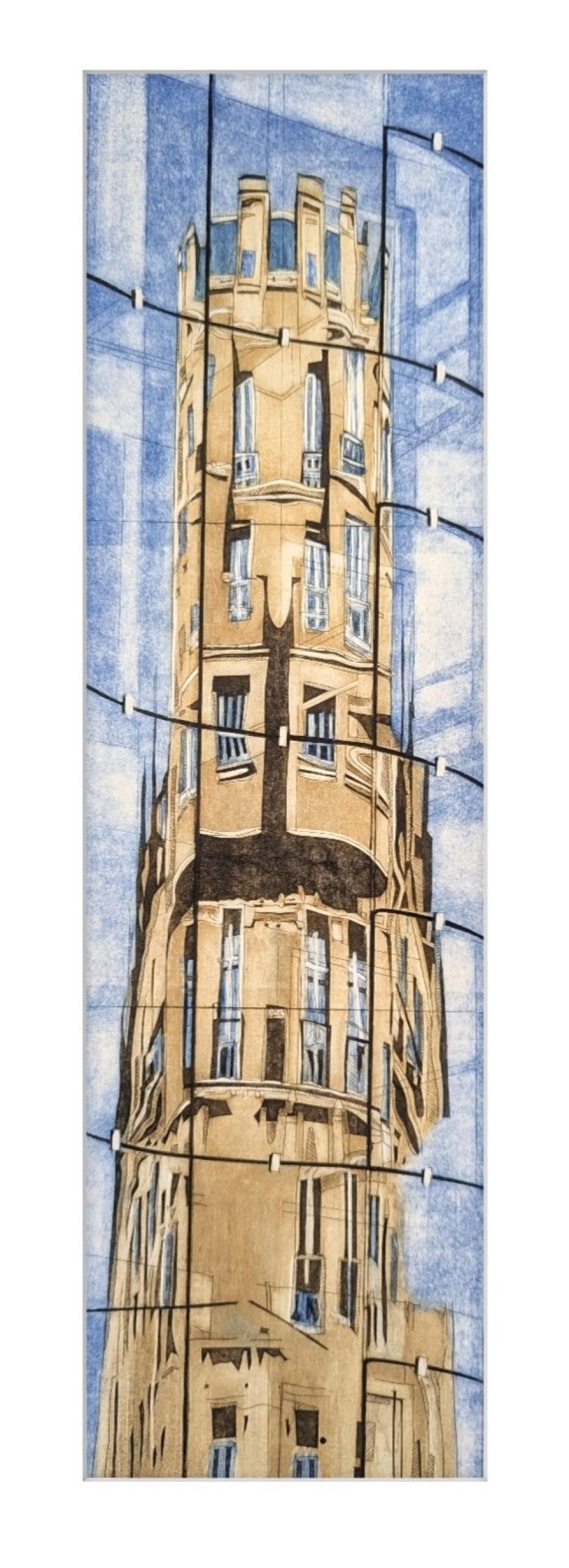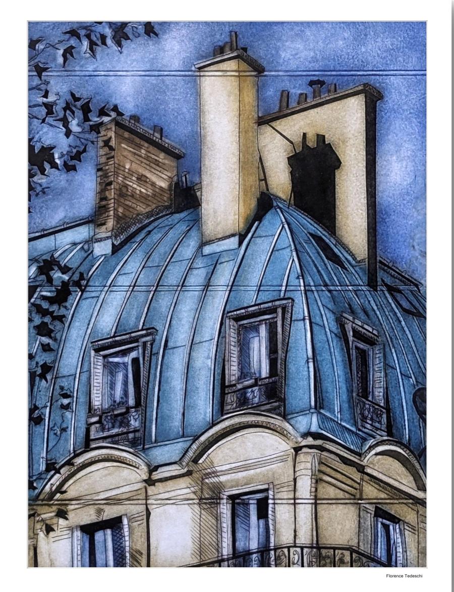 Florence Tedeschi explore différentes techniques de gravure, avec une prédilection pour la gravure sur Tetra Pak. Ce matériau hybride, où dialoguent l’aluminium lisse et le carton texturé, nourrit sa recherche plastique et stimule son expérimentation.