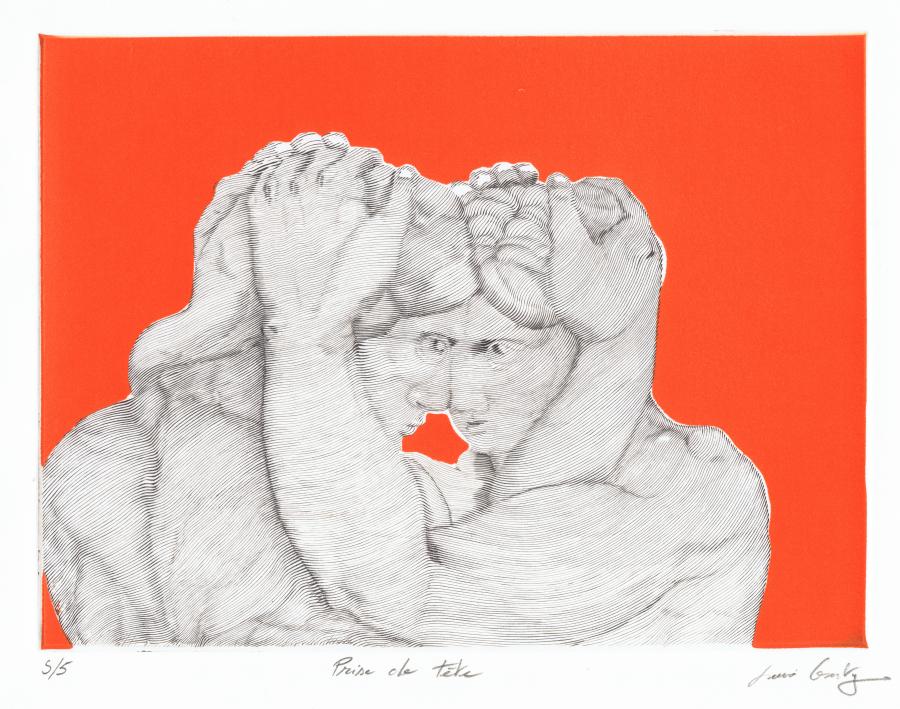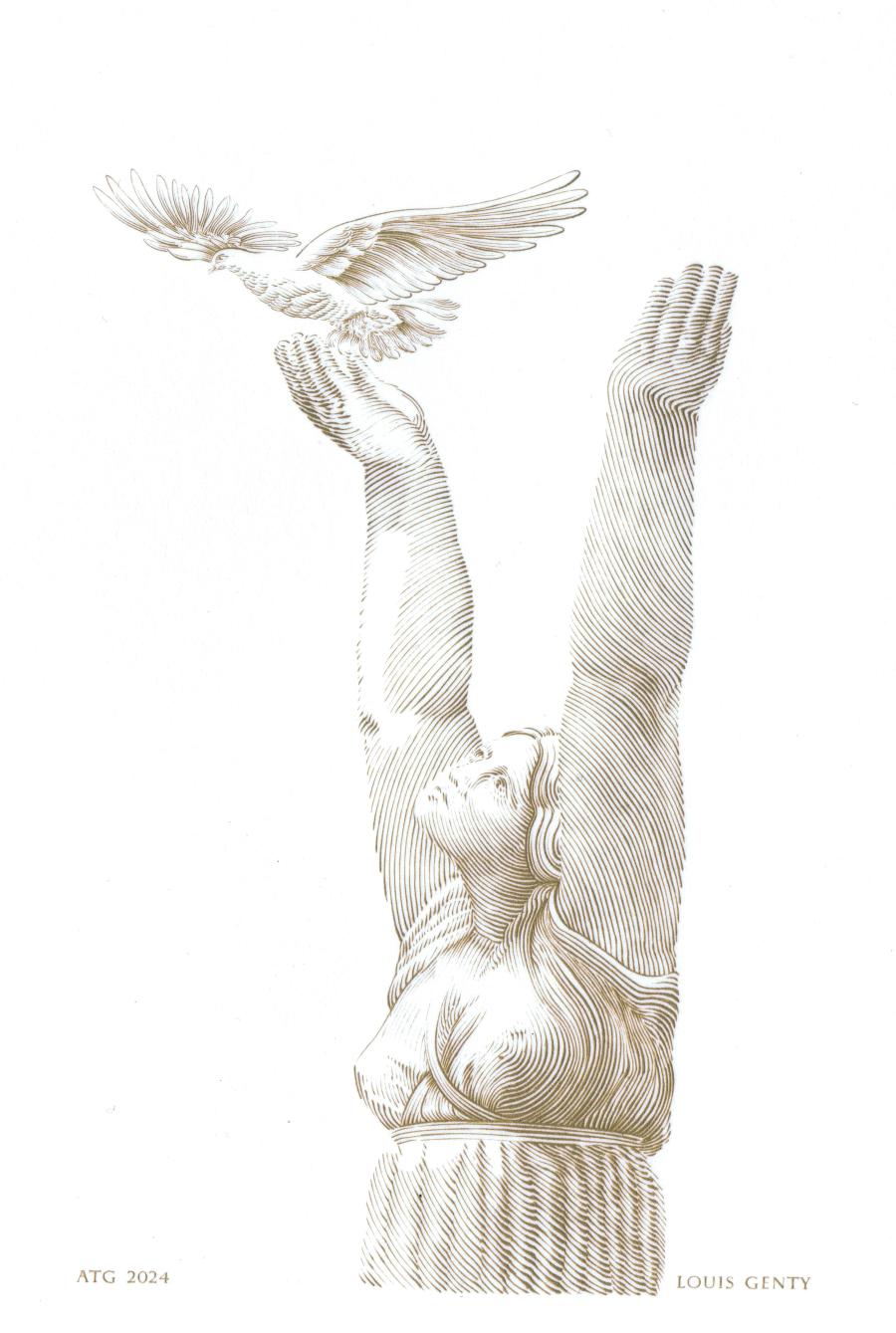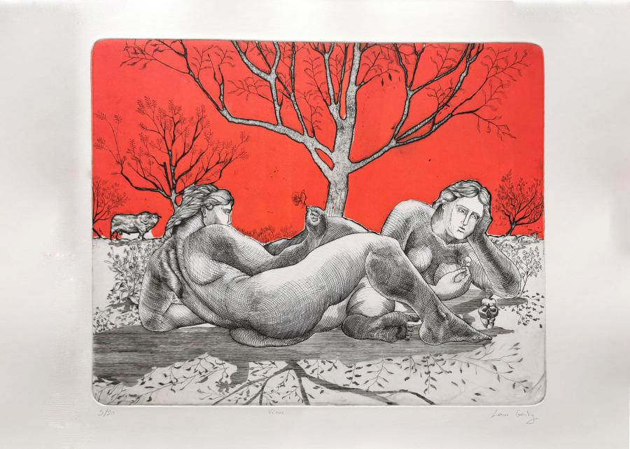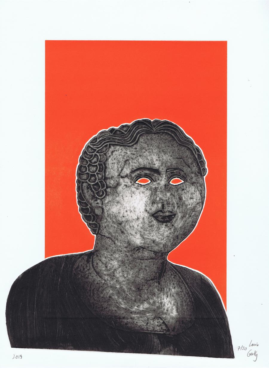Ensuite, dans sa série de Dames, Louis aborde un autre thème très important pour lui. Inspiré de grands burinistes comme Mellan ou Goltzius pour les poses et le trait, il questionne la représentation de la féminité chez les artistes masculins, en allant à contre pied de l'hypersexualisation actuelle dans notre société. Les corps féminins restent nus, comme sur les statues grecques, mais ils sont quasi androgynes. Il représente un monde idéal, où le patriarcat n'impose pas de dogme viriliste, où les hommes pourraient aborder leur part de féminité sans tabou et sans peur d'être jugés. Cela passe par l'utilisation de symboles, comme l'orchidée (orchis, mot latin voulant dire testicules), le taureau, très utilisé par Picasso, et les différentes représentations de la femme, que ce soit avec la Venus de Willendorf, ou celles sur les photomatons.
