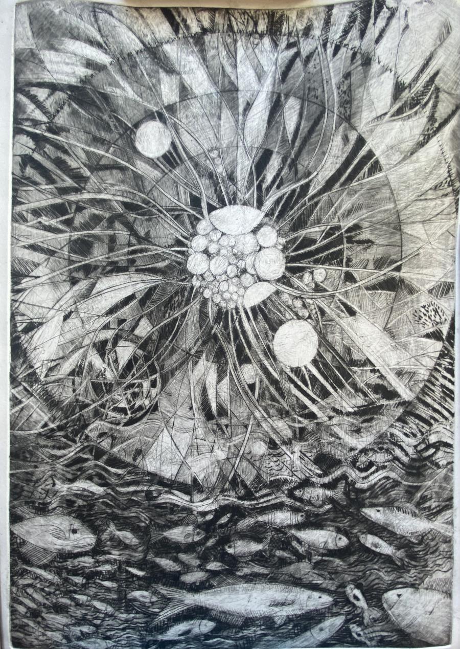 Je m’essaye à l’exprimer graphiquement. Je la vois dans les gens, les paysages, les villes, les fleurs, tout ce qui m’entoure… J’aime le soleil, il ne me quitte pas, la lune et les étoiles, le ciel qui scintille, la lumière qui brille, la mer et la montagne, les oiseaux, les poissons, le bruit du vent, le silence…