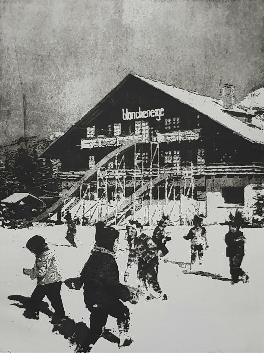 A l’origine architecte et graveur « traditionnel », je me suis ouverte, après des années de croquis et de carnets de voyage, à la diversité des techniques d’impression. Je manipule la photo et l’ensemble des techniques de reproduction et d’estampe pour construire des images ( gravées, peintes, souvent en techniques mixtes) ancrées dans mon quotidien.